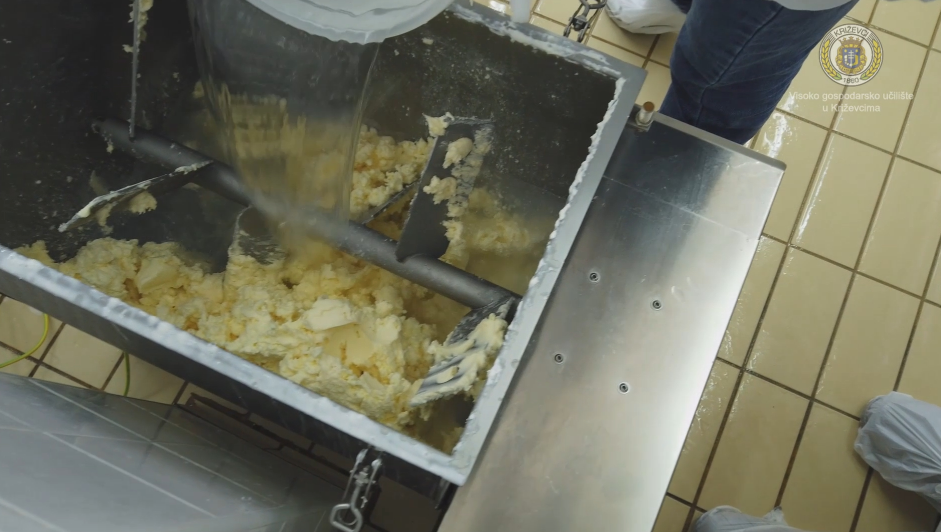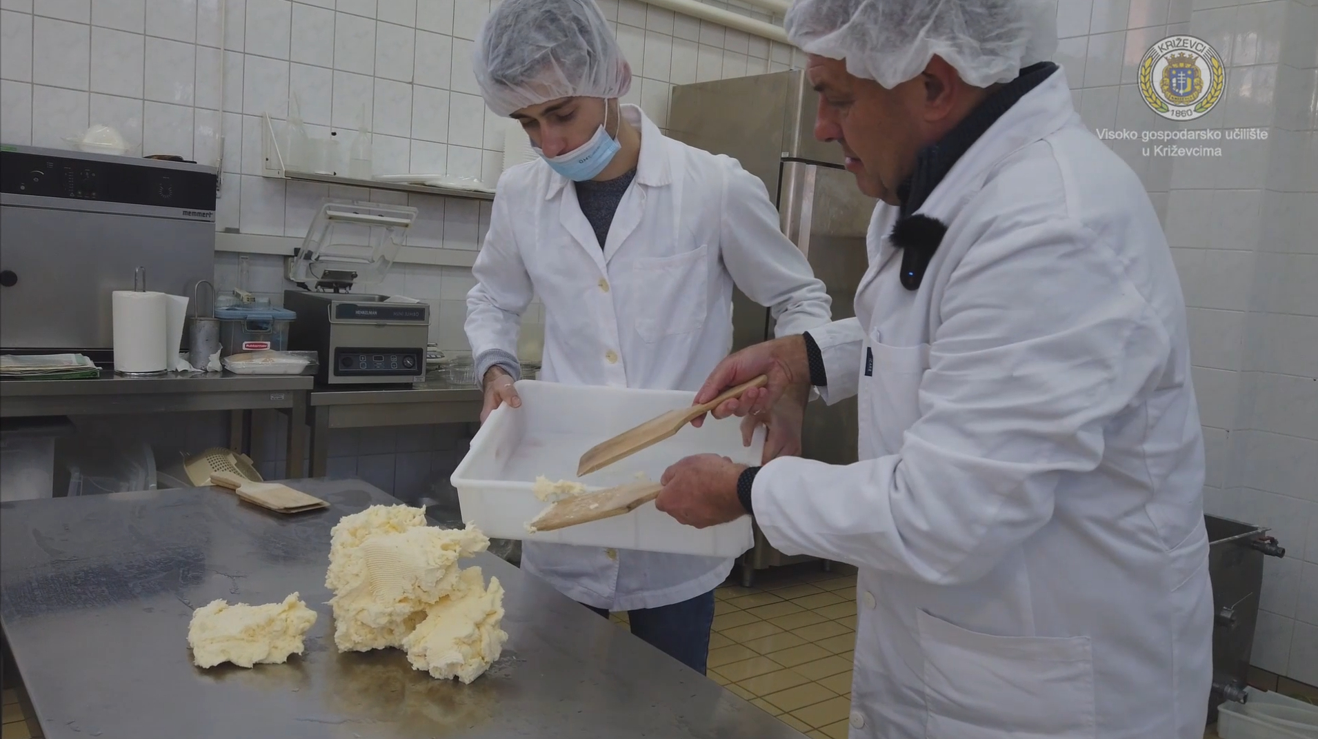Kao što ćete vidjeti u malom snimljenom prilogu studenti Preddiplomskog stručnog studija Zootehnika (5.sem.) tijekom obavljanja stručne prakse iz predmeta Mljekarstvo i sirarstvo proizvode maslac. Samostalnim radom prate tehnološki proces od separacije mlijeka, proizvodnje i cijepljenja vrhnja, bućkanja i pranja maslaca, proizvodnje stepke do pakiranja.