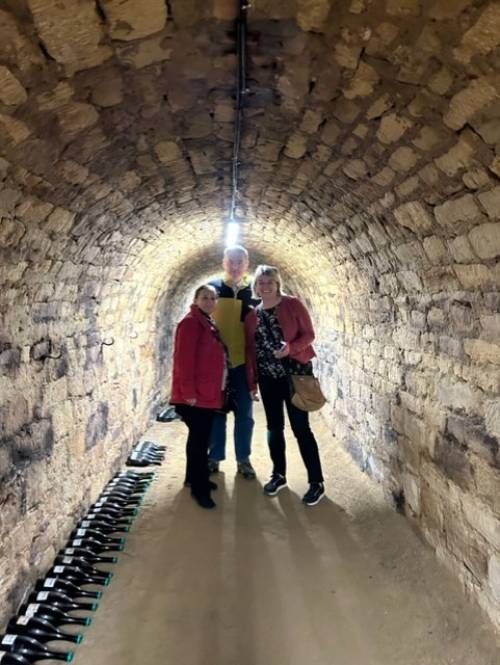 U sklopu ovog posjeta ljubazni domaćini su nam pokazali sveučilišne vinograde gdje se na 100 ha odvija ozbiljna vinogradarska proizvodnja, odnosno proizvodnja vina. Podrumi s vinom smješteni su u podzemnim prolazima i malim labirintima. Kako je još uvijek u tijeku bila berba, domaćini su nas nakon obilaska podruma ponudili sa svježim moštom, ali i vrhunskim fakultetskim vinima. Ova se vina inače proizvode isključivo u nastavne, znanstvene i promocijske svrhe.