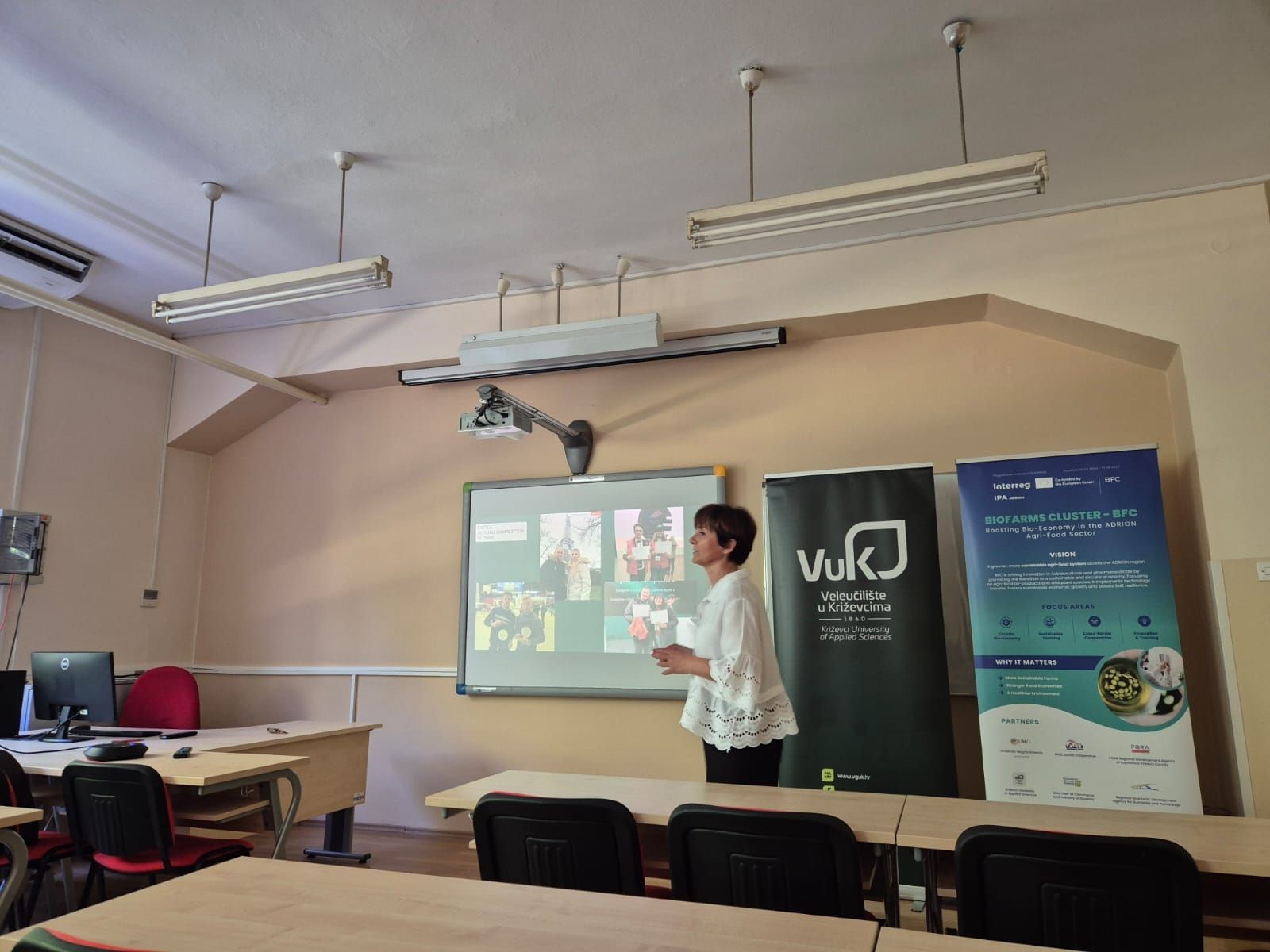 Na Veleučilištu u Križevcima 2.7.2025. godine održan je projektni sastanak kao dio planiranih Pilot aktivnosti u okviru provedbe BFC Interreg IPA ADRION projekta na kojem je Veleučilište partner. Na sastanku su sudjelovali predstavnici partnera iz Italije (Università degli studi Magna Graecia di Catanzaro – voditelj projekta i GOEL società cooperativa sociale), Grčke (JOIST), Bosne i Hercegovine (Asocijacija FabLab B&H), Albanije (Agjencia për Zhvillim të Qëndrueshëm), Slovenije (Gospodarska zbornica Slovenije – Združenje kemijske industrije), Srbije (Regionalna agencija za ekonomski razvoj Šumadije i Pomoravlja) i Hrvatske (Veleučilište u Križevcima i PORA).