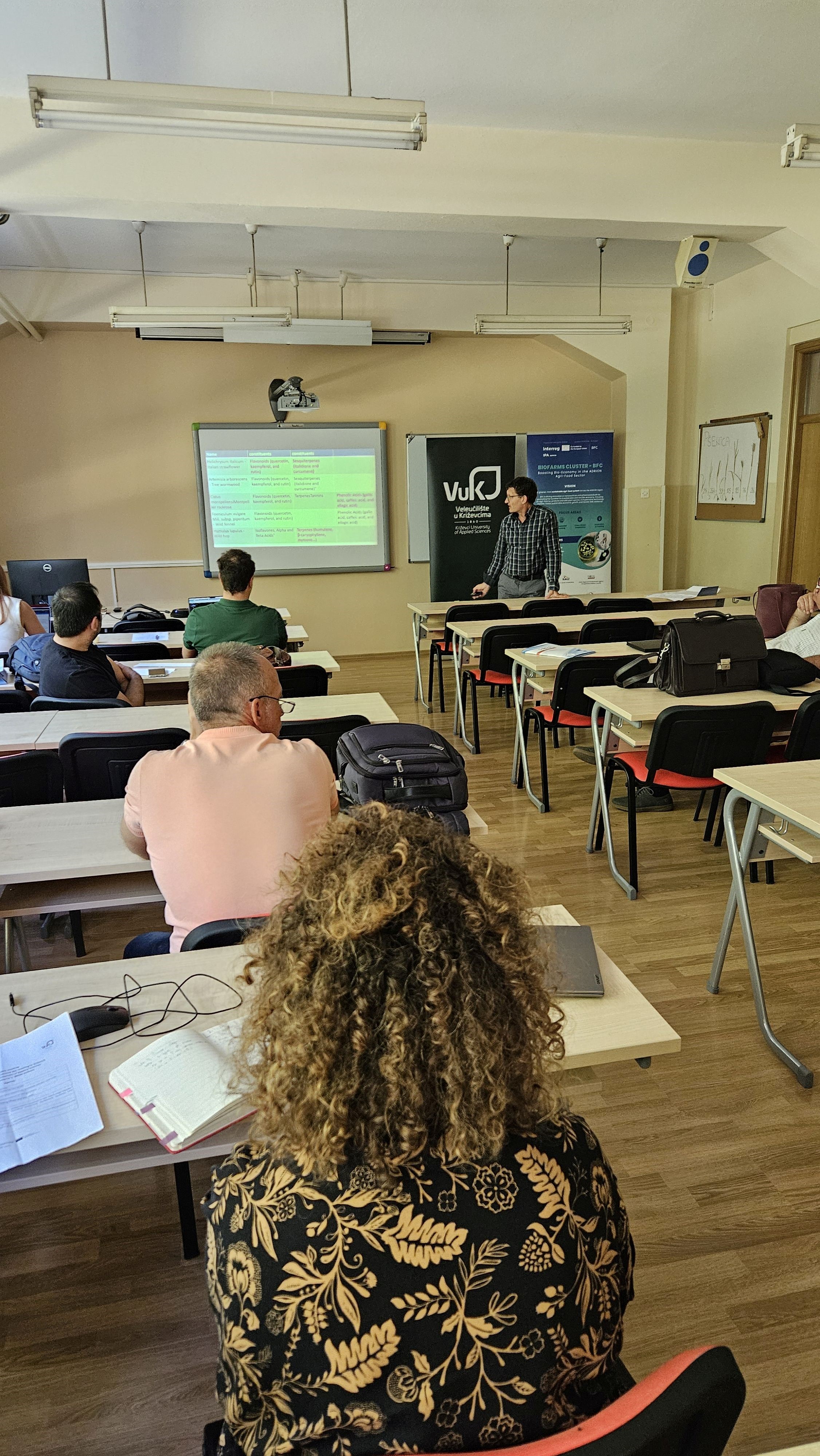 Tema sastanka bila je aktivnost za koju je Veleučilište u Križevcima voditelj i koordinator. Naime Veleučilište u Križevcima voditelj je radnog paketa izrade pilot aktivnosti koje su predviđene kao sastavnica projekta, odnosno radni paket. To podrazumijeva: izradu smjernica za procese i protokole za mikropropagaciju pojedinih aromatičnih i ljekovitih biljnih vrsta koje su ili bi mogle postati ugrožene u svojem prirodnom habitatu uslijed prekomjernog nestručnog sakupljanja, provjeru metodologije za preradu sjemenki šljiva kao nusproizvoda u preradi plodova šljive i probnu pripravu sirupa protiv kašlja na bazi ljekovitog bilja i meda.