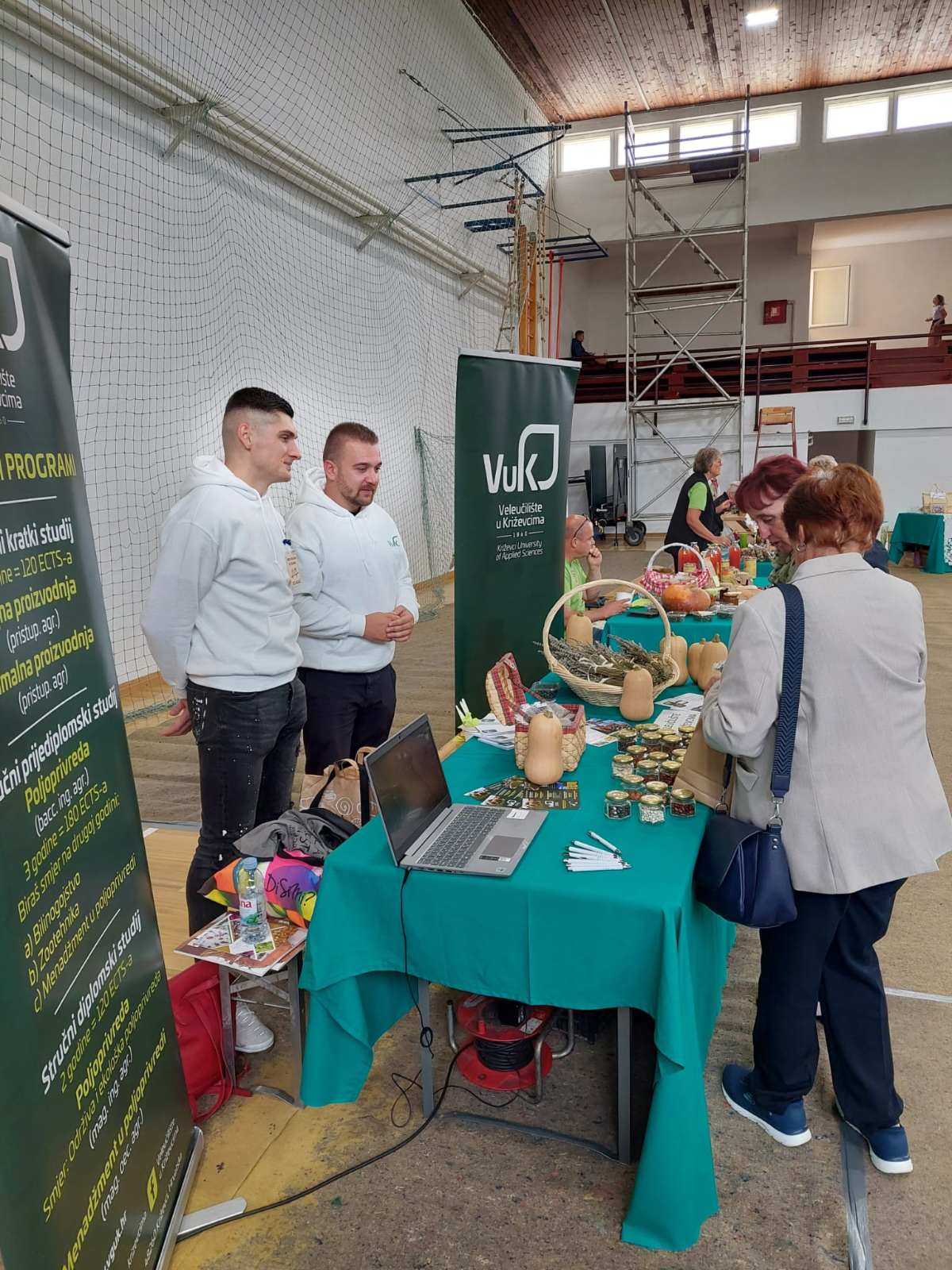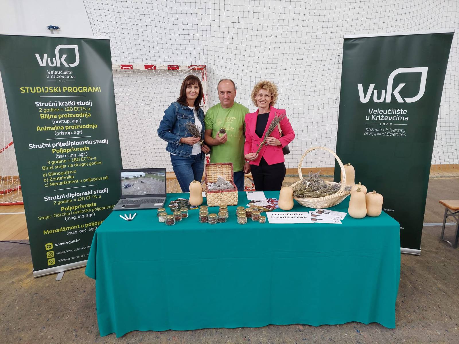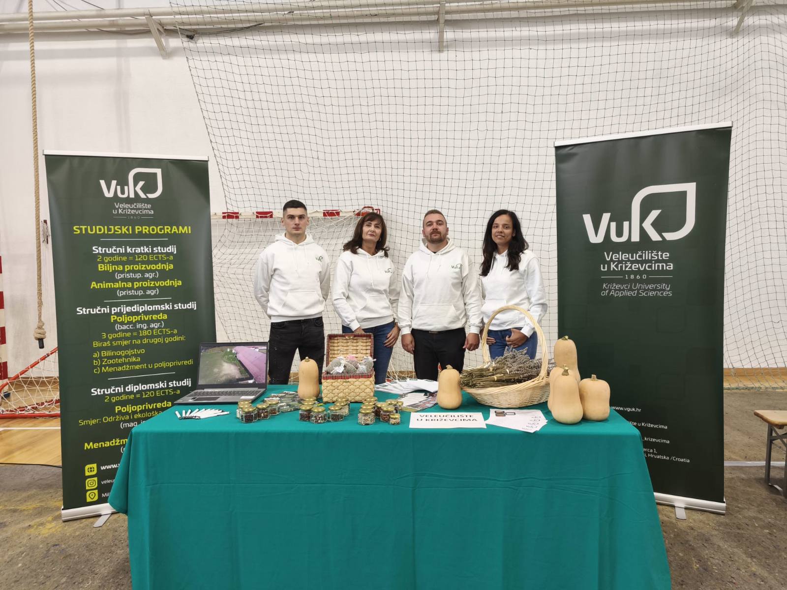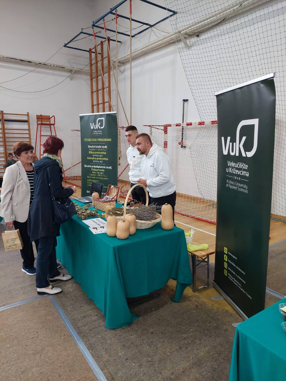 Vizualno atraktivan štand Veleučilišta, veselih jesenskih boja i prigodnih eksponata, privukao je zainteresirane posjetitelje, a nastavnici i asistenti prezentirali su studijske programe i usluge VUK-a. Predstavljeni su postojeći studijski programi, s naglaskom na nove stručne kratke studije „SKS“ (Animalna proizvodnja i Biljna proizvodnja) koji se na Veleučilištu počinju izvoditi početkom ove akademske godine. Također je izložena i djelatnost Agrokemijskog laboratorija koji djeluje kao važan oslonac poljoprivrednicima, proizvođačima hrane i lokalnoj zajednici, pružajući stručne analize i savjetodavne usluge u području poljoprivrede i zaštite okoliša.