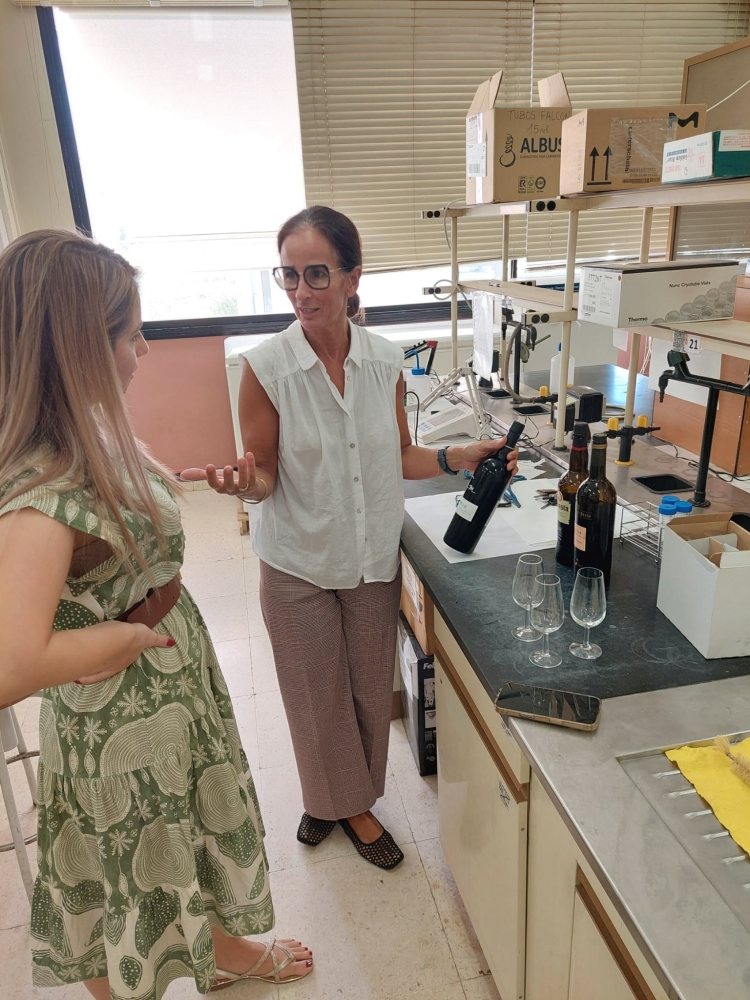 Drugoga dana posjetile su fakultetski laboratorij u kojem se provode istraživanja iz područja enologije. Tijekom obilaska razgovaralo se o proizvodnji pjenušavih vina, što je povezano s temom doktorskog istraživanja Ive Šikač, mag. ing. agr., te su razmijenjena iskustva o analitičkim metodama i aktualnim istraživačkim pristupima. Na temelju tog kontakta uslijedio je i dodatni posjet laboratoriju specijaliziranom za fizikalno-kemijske analize vina u kojem su sudionice imale priliku upoznati se s primjenom suvremenih analitičkih sustava, uključujući GC-MS za analizu aromatskog profila vina.