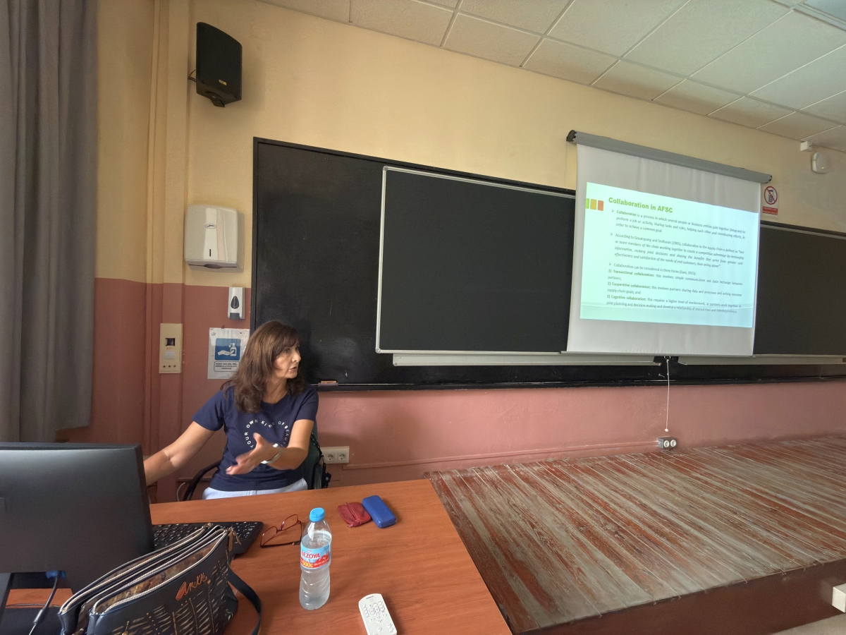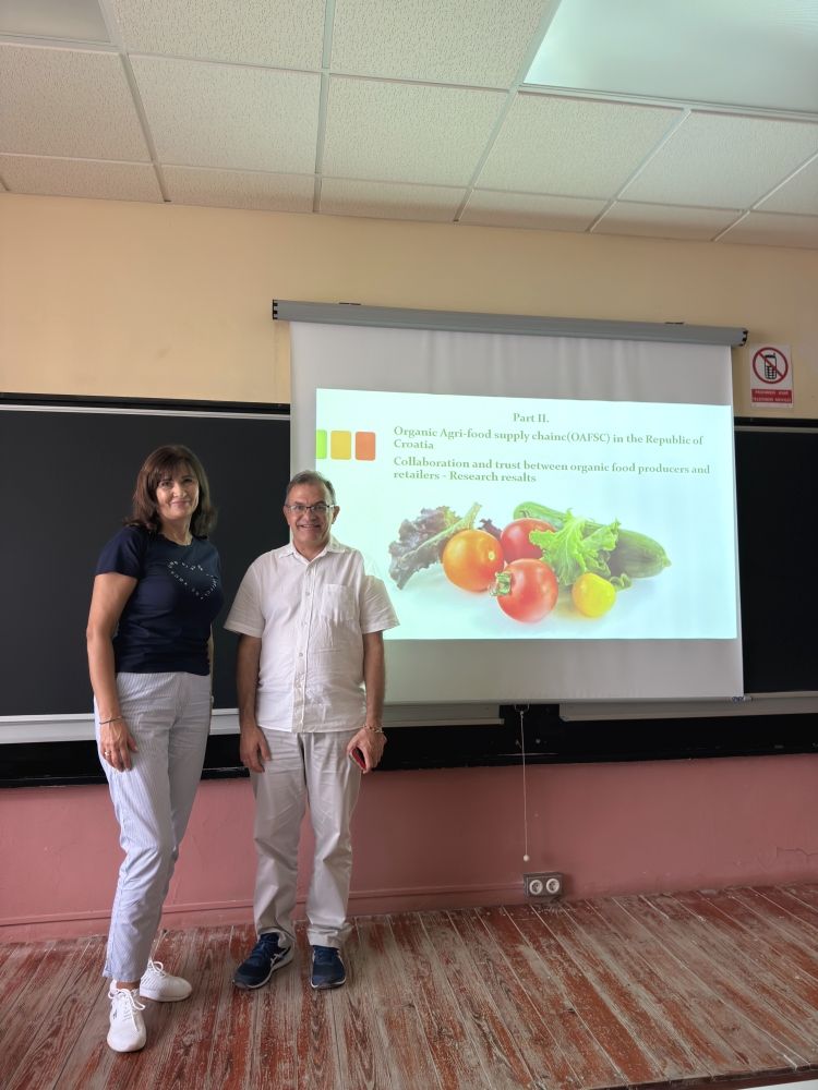 Dr. sc. Dušanka Gajdić tom je prigodom održala predavanje studentima i osoblju ETSIA-e na temu „Organic Agri-food Supply Chains“ u kojem je predstavila iskustva i primjere dobre prakse u području upravljanja lancima opskrbe hranom s fokusom na rezultate istraživanja provedenog u Hrvatskoj, a koja se odnose na suradnju i povjerenje između proizvođača i maloprodavača organske hrane.