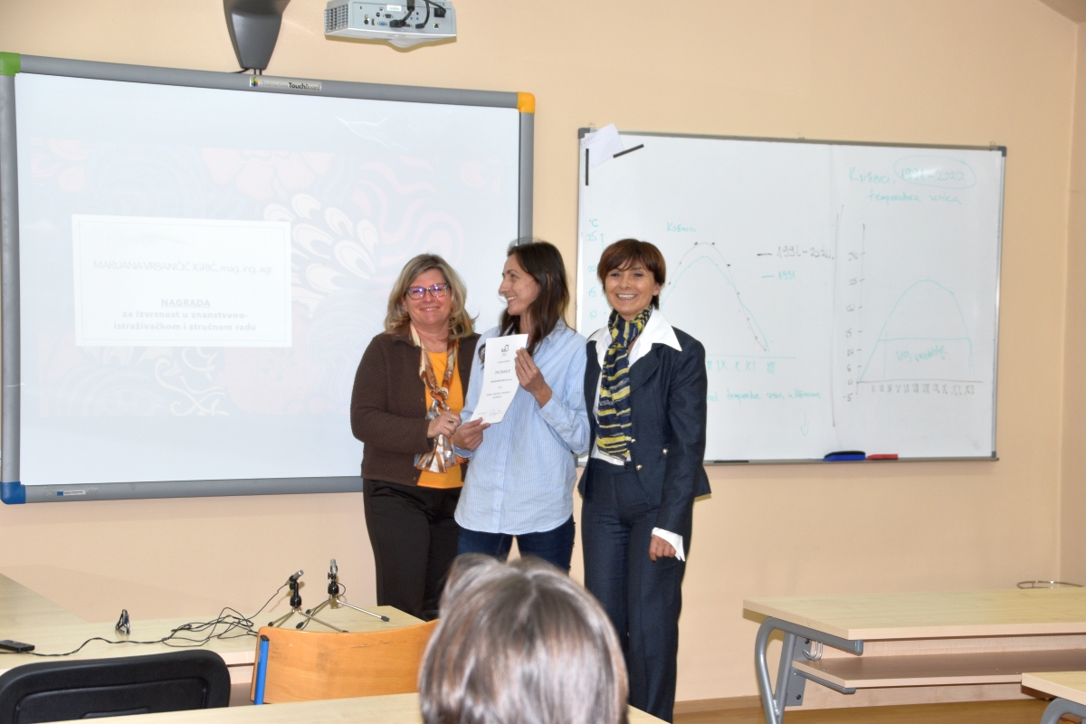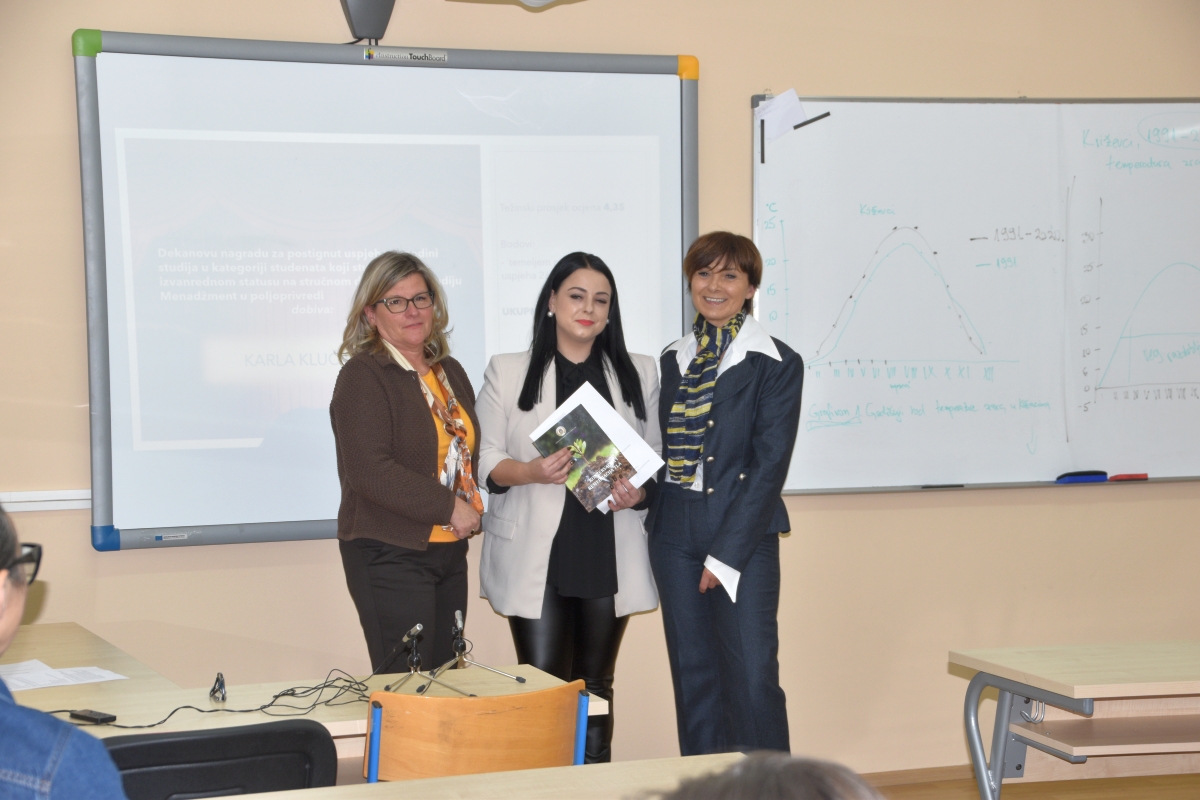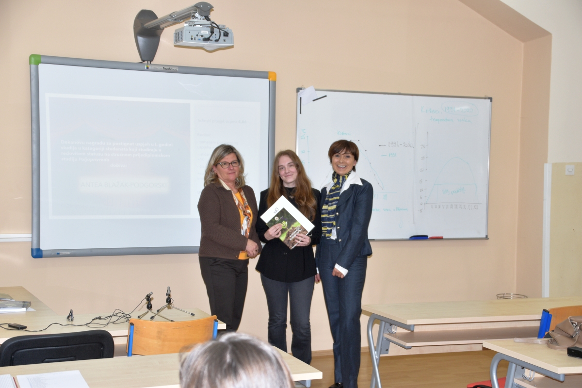 Za postignute rezultate u protekloj akademskoj godini Dekanovom nagradom nagrađene su studentice: Antea Podgorski-Blažak – najbolja studentica prve godine u redovitom statusu na Stručnom prijediplomskom studiju Poljoprivreda; Tena Conar – najbolja studentica prve godine u izvanrednom statusu na Stručnom diplomskom studiju Poljoprivreda; Karla Klučariček – najbolja studentica prve godine u izvanrednom statusu na Stručnom diplomskom studiju Menadžment u Poljoprivredi.