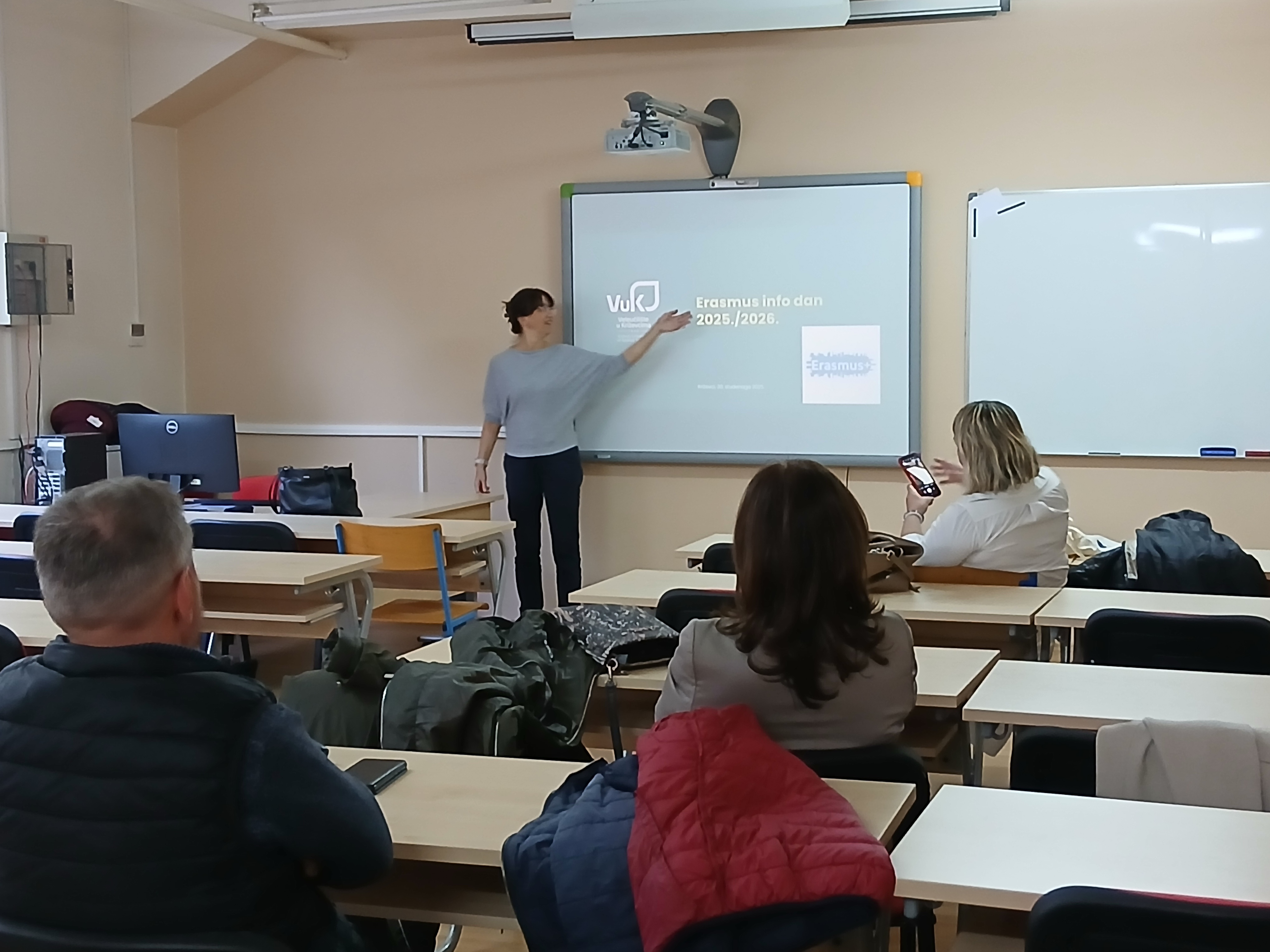 Na Veleučilištu je 20. studenoga 2025. održan Erasmus info dan. Erasmus koordinatorica dr. sc. Valentina Papić Bogadi predstavila je nadolazeće natječaje za studente, nastavno i nenastavno osoblje. Tijekom ove akademske godine odobrene su mobilnosti koje nastavnici mogu iskoristiti za boravak na partnerskim ustanovama visokoga obrazovanja u programskim EU državama, ali i u partnerskim državama izvan granica Europe. Veleučilište je u protekloj akademskoj godini sklopilo nove interinstitucijske sporazume i dodatno proširilo mrežu ustanova s kojima surađuje.