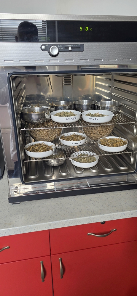 Laboratorijski dio vježbi obuhvatio je određivanje hranjivih tvari krmiva prema Weender i Van Soest analitičkim metodama. Određeni su sadržaj vode i suhe tvari, udio sirovog pepela spaljivanjem suhe tvari te izračun organske tvari (organska tvar = suha tvar – sirovi pepeo). Sadržaj sirovog proteina određen je pomoću uređaja KJETFLEX K-360, a udio sirove masti eterskom ekstrakcijom. Sirova vlaknina određena je kuhanjem uzoraka u otopini neutralnog deterdženta (neutralno-deterdžentna vlakna). Uzorci travne i kukuruzne silaže dodatno su analizirani mjerenjem pH vrijednosti, pri čemu su uzorci odmjereni u čaše, preliveni destiliranom vodom, promiješani, procijeđeni i analizirani pomoću pH-metra.