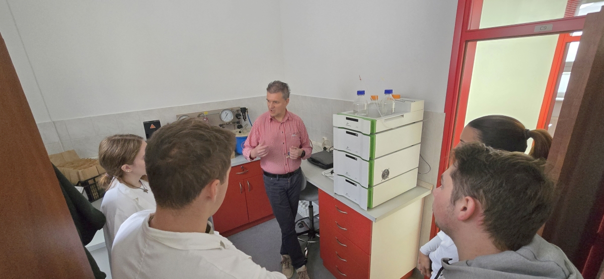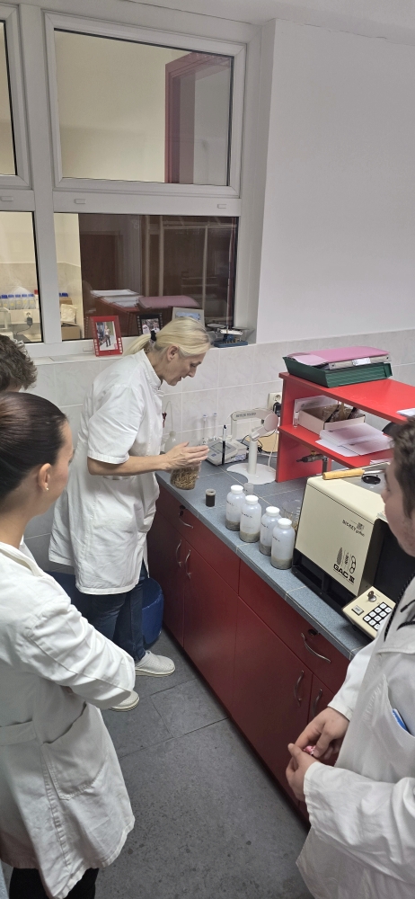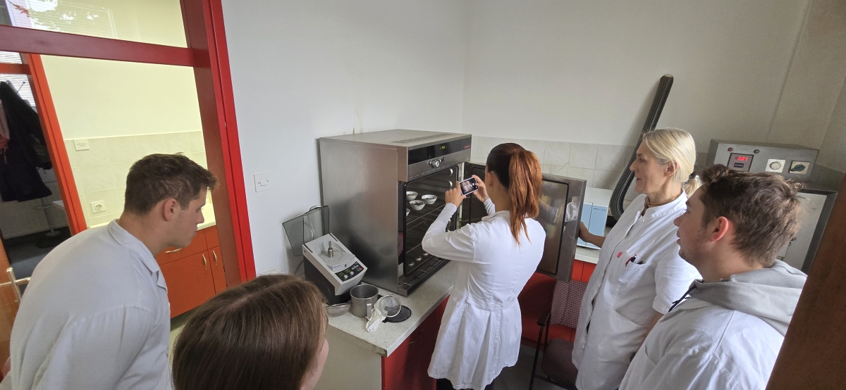 U sklopu nastave na 2. godini stručnoga prijediplomskog studija Poljoprivreda, smjer Zootehnika, provedene su terenske i laboratorijske vježbe s ciljem upoznavanja studenata s postupcima uzorkovanja stočne hrane te određivanja osnovnih hranjivih tvari krmiva. Vježbe su izvedene u govedarskom praktikumu Srednje gospodarske škole te u laboratoriju VUK-a (C zgrada, prizemlje), u okviru kolegija Hranidba stoke pod vodstvom Sanjice Čeredar, bacc. ing. agr.