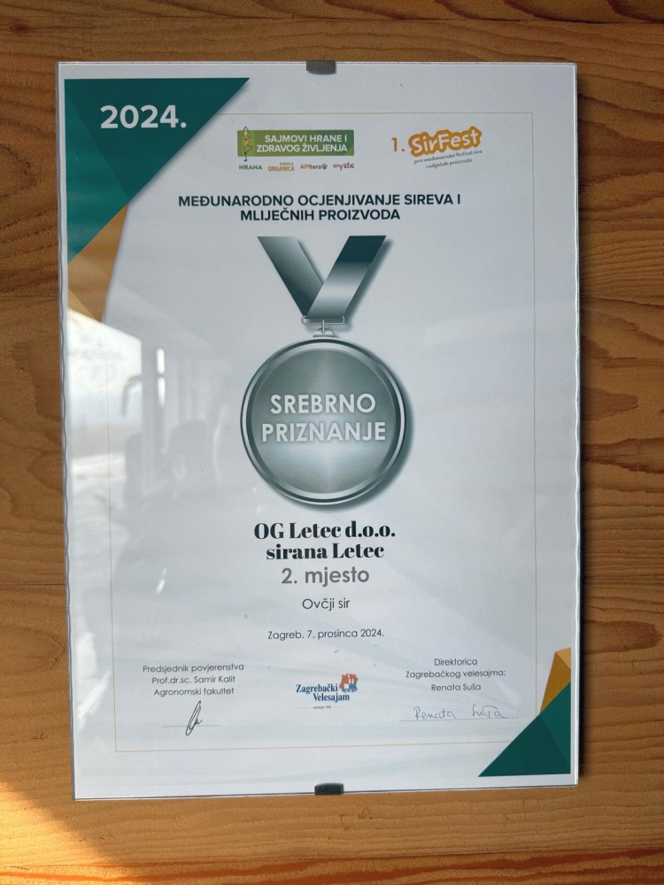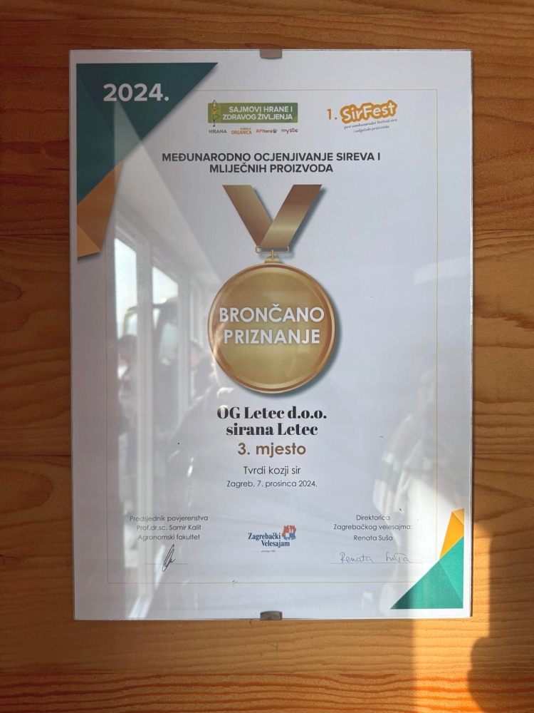 Na OPG-u Letec, našem prvom odredištu, studenti su upoznati sa svestranom proizvodnjom. Gospodarstvo je usmjereno na ekološki uzgoj jelena običnog, proizvodnju sijena i ekoloških žitarica te na uzgoj za mlijeko alpino i sanskih koza. Putem EU projekata osigurali su preradu kozjeg mlijeka u mliječne proizvode koje plasiraju u vlastitoj sirani i diljem Lijepe naše. Poljoprivredna znanja i znanja o uzgoju stoke stjecana su u obiteljskom okruženju još od malih nogu i temelje se na dugogodišnjem iskustvu. Dječačka ljubav prema prirodi i radu sa životinjama se naziru na svakom koraku. Za spoj ljubavi i posla su, pored dugogodišnjeg rada i učenja, nužno potrebna i nova znanja kao i investicije u napredak, što je voditelj imanja Igor Letec nesebično podijelio sa studentima.
