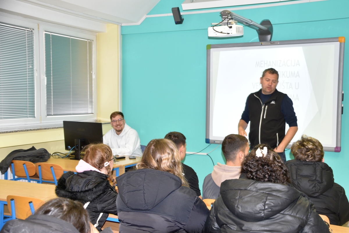 Velik interes učenici su pokazali tijekom obilaska bogate lepeze aktivnosti koje smo im predstavili u tri područja: bilinogojskom, stočarskom i menadžerskom.