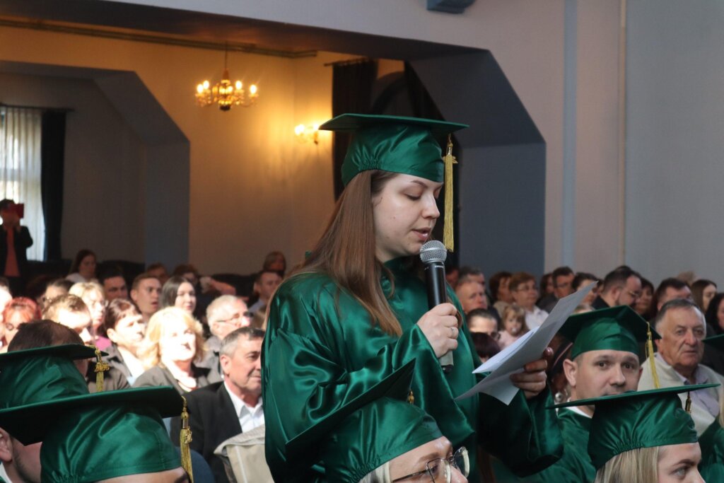 Promovent Leon Šopar, obratio se prisutnima u ime završenih studenata stručnog prijediplomskog studija Poljoprivreda, a Josipa Kristanović kao predstavnica studenata diplomskih stručnih studija.